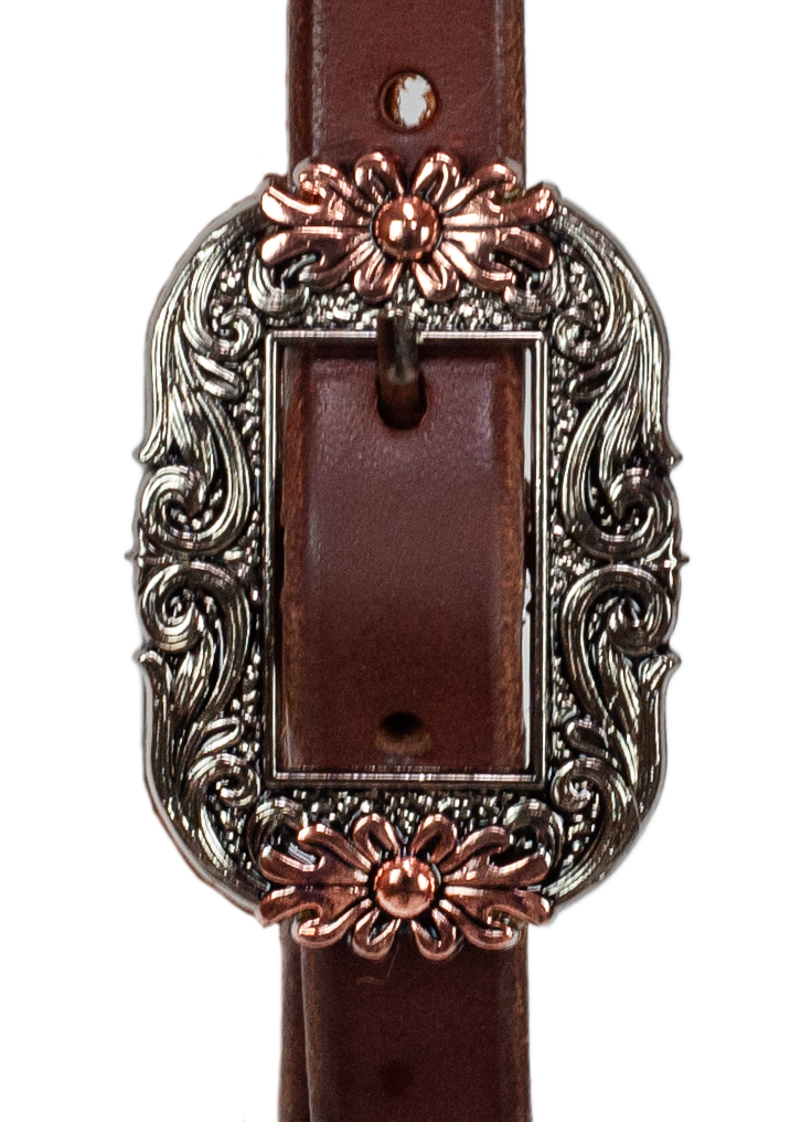 3/4" Browband Headstall - Oval Copper Flower Buckles
