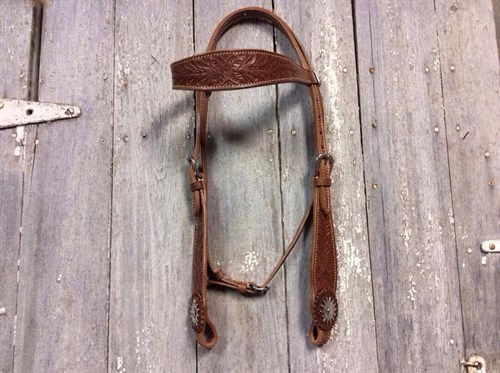 Circle Y Basket Weave Iron Leaf Concho Browband Headstall